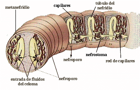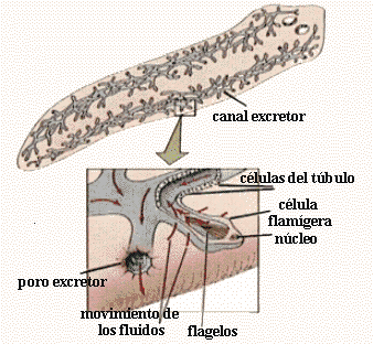 del túbulo. Las sustancias de desecho atraviesan las células flamígeras, penetran en los