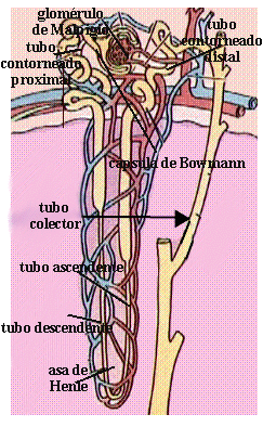![]() | Una nefrona está formada por el glomérulo renal, constituido por capilares sanguineos,