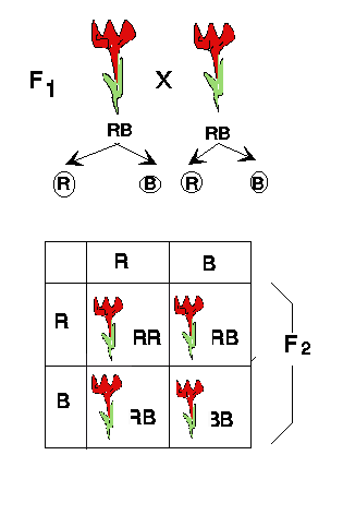 Estas plantas de la F1 se cruzan entre sí, teniendo en cuenta los gametos que formarán cada una de las plantas