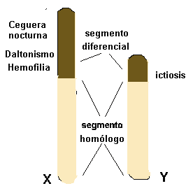del cromosoma X, como daltonismo, hemofilia, ictiosis están ligados al sexo.
